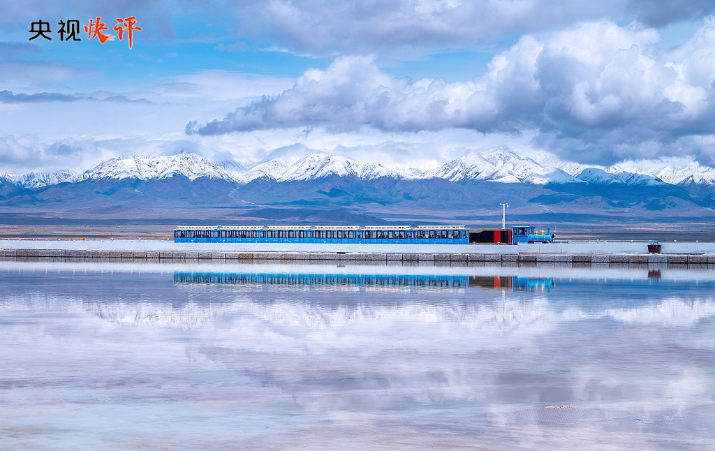 2、茶卡盐湖:被誉为“天空之镜”,湖水映衬着蓝天白云,美得让人陶醉。